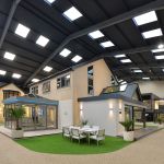 Re:light was commissioned by the end client to help create an internal design centre comprising several complete show home design modules within a large warehouse. The lighting scheme had to provide general amenity lighting for the entire area along with targeted illumination for each internal structure. This unique space called for a wide range of different moods and lighting effects. Flexibility and future proofing were prioritised to allow periodic change and reconfiguration of buildings and displays.