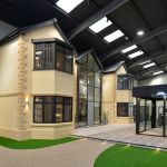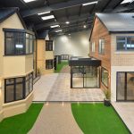 Millshaw Park is sited in the heart of Leeds on a large site comprising several warehouses, a factory and offices. One of the 2360sqm warehouse spaces was to be converted into a design centre featuring traditional and contemporary houses along with a reception area, mezzanine, play media room, multiple kitchen display areas and meeting rooms.